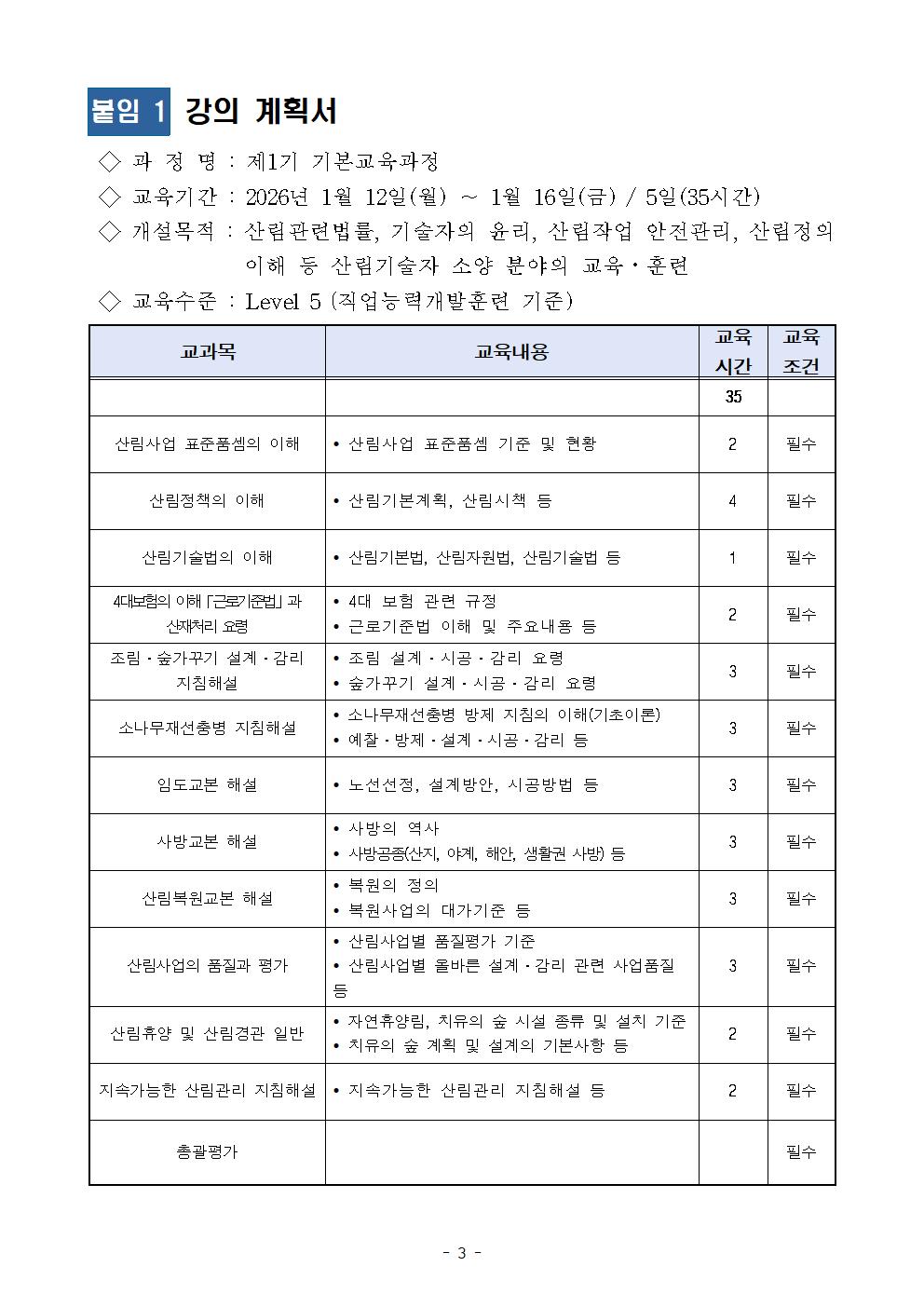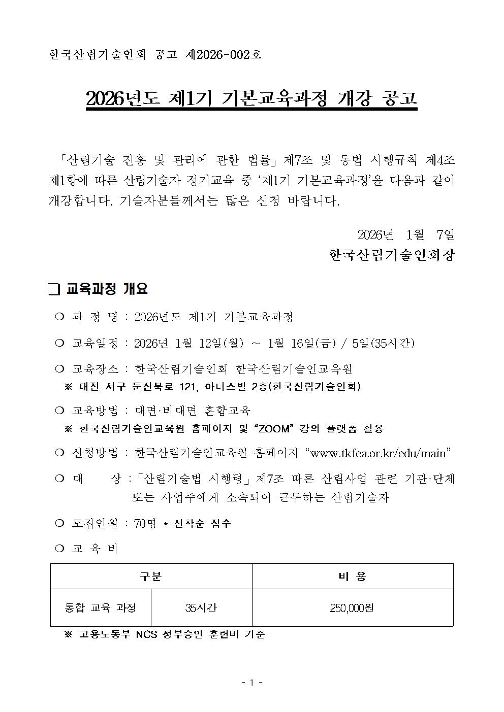 [제2026-002호] 제1기 기본교육과정 개강 공고