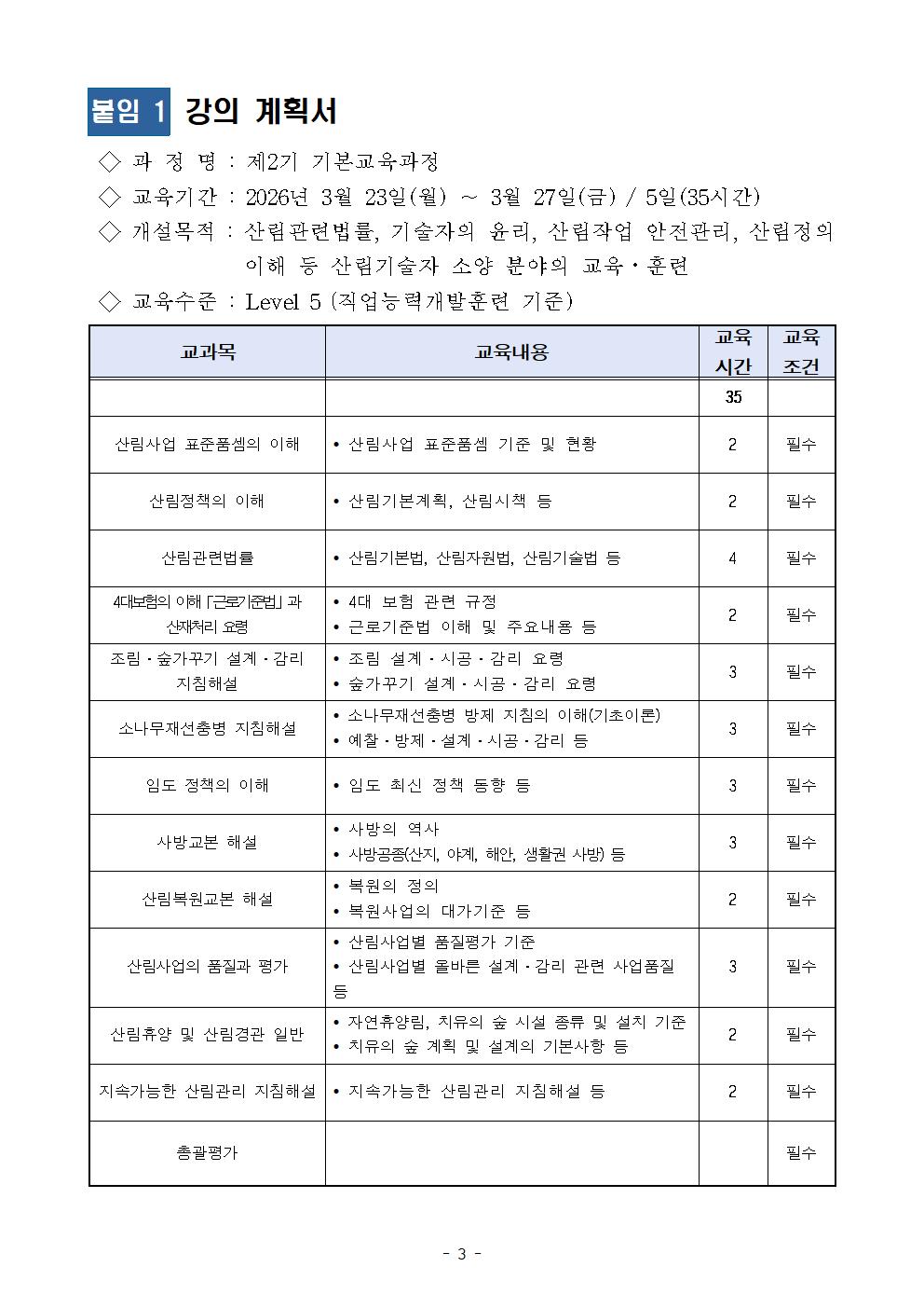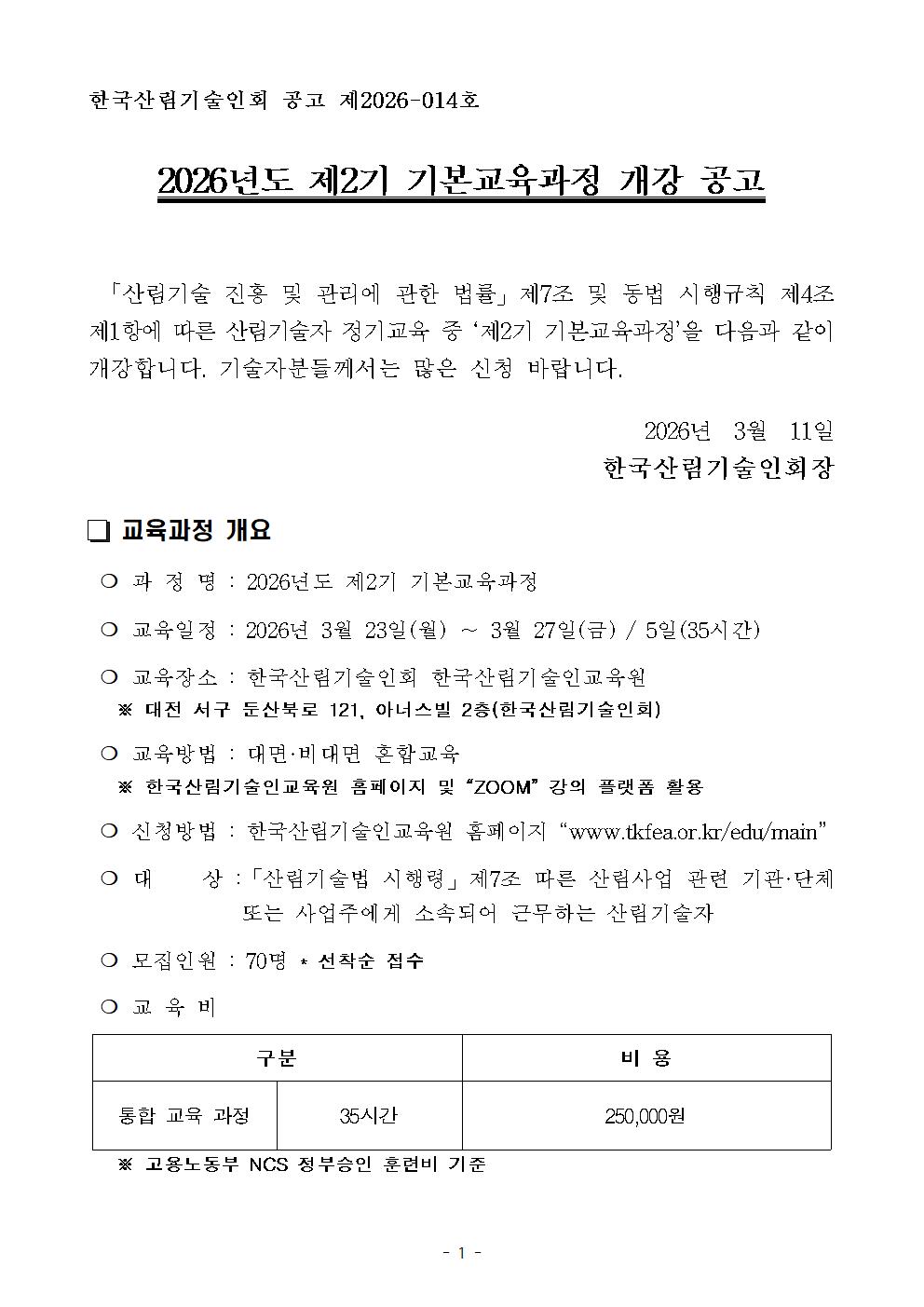 [제2026-014호] 제2기 기본교육과정 개강 공고