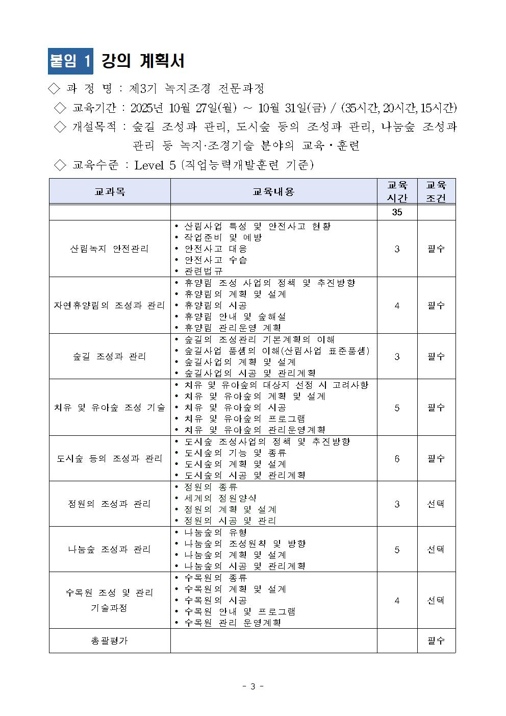 [제2025-039호] 제3기녹지조경 전문과정 개강 공고