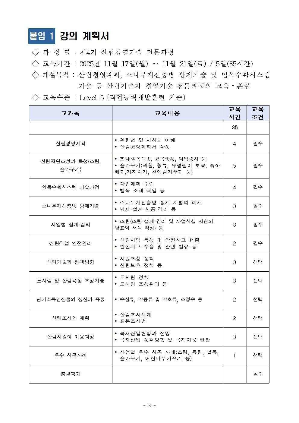 [제2025-046호] 제4기 산림경영기술과정 개강 공고