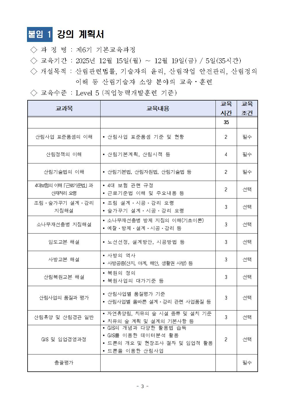 [제2025-052호] 제6기 기본교육과정 개강 공고