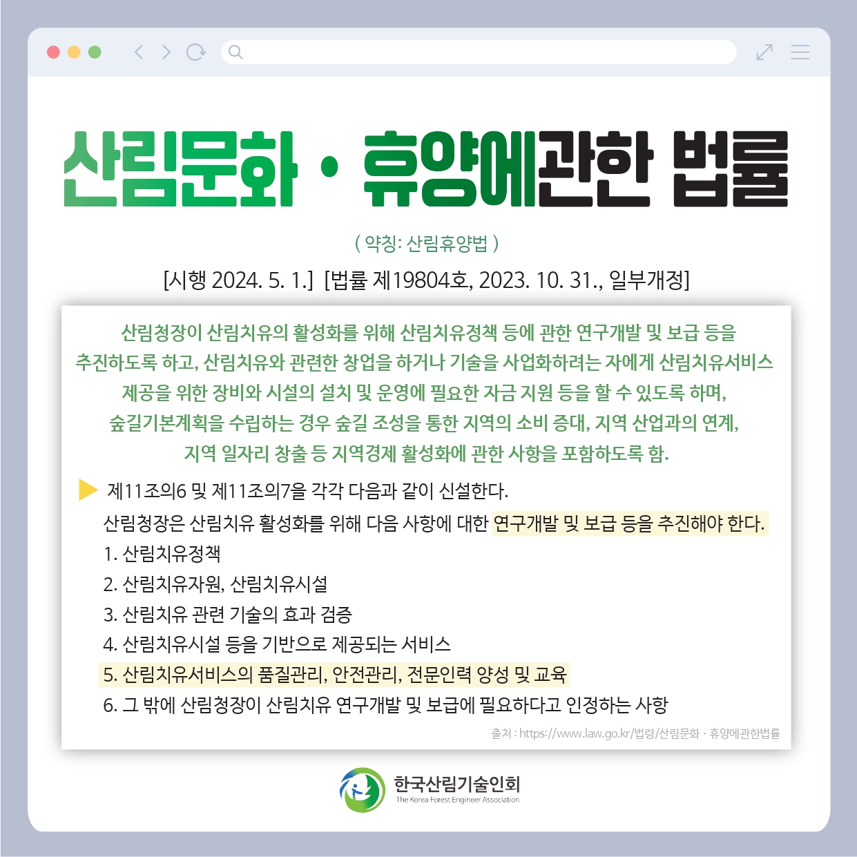 「산림문화ㆍ휴양에 관한 법률」 (23. 10. 31. 공포, 24. 5. 1. 시행)
